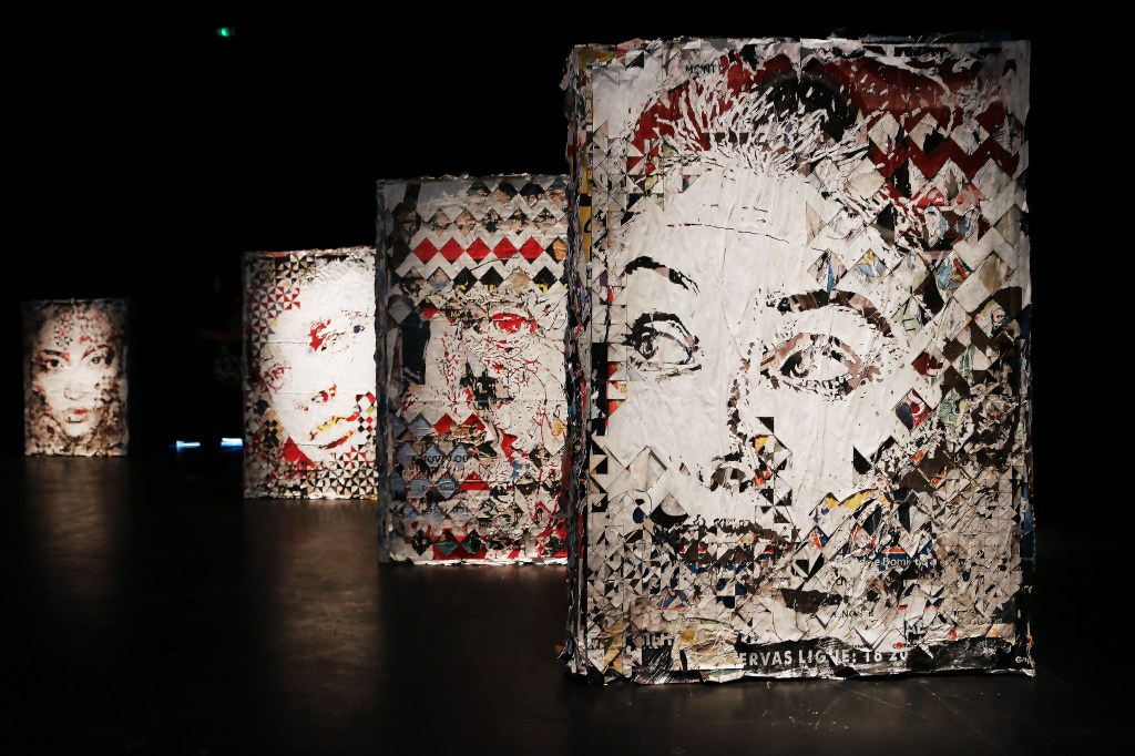 Nhìn vào cách sắp đặt những tác phẩm này khiến nó tưởng tượng đến cảnh nó chạm vào một cái là … uỳnh, chúng lần lượt lăn đùng ra như domino. Đùa chút thôi! Nghiêm túc mà nói thì nó thấy ấn tượng về những gương mặt, những biểu cảm mà tác giả lưu lại trên những miếng “domino” này hơn. Các biểu hiện cảm xúc khác nhau hiện ra từ những bức chân dung thể hiện cách mọi người cảm nhận về thành phố. Serie tác phẩm này của ông cho thấy mối quan hệ chặt chẽ giữa đô thị và cộng đồng cư dân của nó, cách thành phố định hình cư dân và cách người dân xây dựng nên thành phố của họ. Và có lẽ đây cũng là đặc điểm chung và nổi bật trong mọi tác phẩm của VHILS.