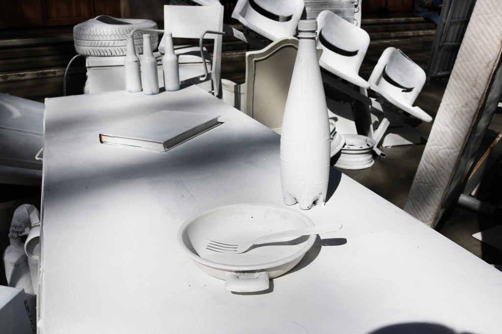 Tất cả mọi thứ chúng ta sử dụng trong cuộc sống hiện đại đều hiện hữu tại đây. Và nếu như Marcel Duchamp kí tên lên trên chiếc bồn cầu rồi đặt nó ở một vị trí mới để biến nó thành nghệ thuật, thì ở đây cũng gần giống vậy, VHILS đã phủ cho những đồ vật này một lớp áo trắng không được sạch sẽ tinh tươm cho lắm, chúng giống như một lớp lót được sơn qua quýt cho bức tường chuẩn bị thay đổi diện mạo hơn. Hoặc cũng có thể so sánh chúng với những vạch sang đường mới sơn lại để che đi những bụi bặm, những vết bánh xe lăn nhưng cuối cùng vẫn che không nổi những dấu vết thời gian ấy.