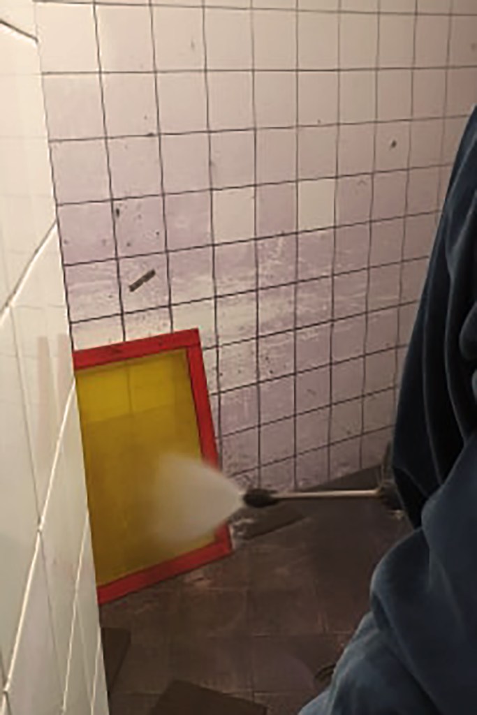 Đến buổi chiều, bọn nó bắt đầu chuẩn bị khuôn in và mọi sự thú vị bắt đầu từ đây. Chúng nó phủ lên hai mặt của khuôn in một lớp keo phản quang. Lúc thực hiện phải chú ý áp sát vào tấm lưới. Gạt một lần để mực bám vào tấm lưới, xong chúng nó còn phải gạt thêm lần hai, lấy bớt mực ra, để lớp keo không bị quá dày. Dụng cụ “gạt keo” không được quá lớn so với khuôn, vì như vậy hai bên sẽ bị kênh lên và mực dễ bị tràn ra quá nhiều. Xong xuôi đâu vào đấy thì cất vào ngăn sấy đợi khô.