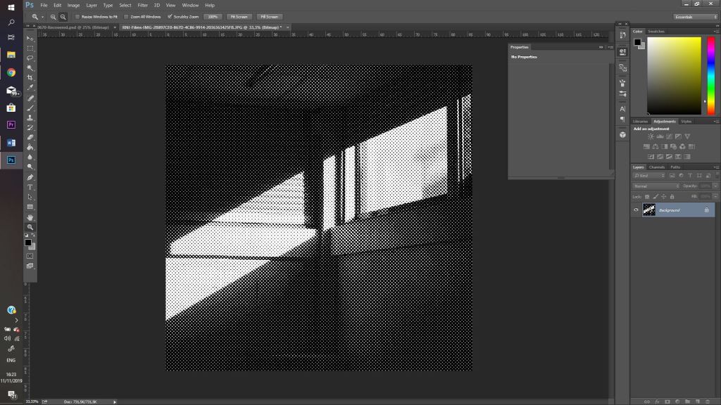 Lúc trước, khi nó chưa được thử nghiệm với thể loại in ấn này, mà chỉ mới được nhìn qua một số bản in của các nghệ sĩ nổi tiếng như Andy Wahol chẳng hạn, nó cứ tưởng từ một bức ảnh màu người ta đơn giản là biến nó thành đen trắng rồi sau đó có thể dùng làm mẫu in ngay và luôn. Nhưng thực ra lại không phải vậy, một bức ảnh đen trắng thông thường được tạo ra từ các sắc độ của màu ghi. Còn một mẫu in thì chỉ được có đen và trắng. Sắc độ của bản in phụ thuộc vào mật độ phân bổ của các chấm nhỏ hoặc đường kẻ màu đen. Tại vì với mỗi lần in, chúng ta chỉ in được một sắc độ màu duy nhất, nên không thể in chỗ này đậm chỗ kia nhạt theo ý mình được, phần trắng là phần mực bị ngăn lại trên lớp lưới, còn phần đen là phần mực được lọt qua và thấm vào trang giấy.