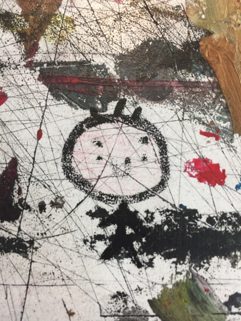 Ngày đầu tiên, sau khi nghệ sĩ giới thiệu chủ đề của workshop, chúng nó bắt đầu đi chụp ảnh. Ngày hôm đó, nó không được năng động lắm nên quyết định chụp những gì nó nhìn thấy trong chính phòng học này. Nó chụp vết màu loang trong bồn rửa dụng cụ, cái bóng đèn, rồi tác phẩm ai đó lỡ bỏ quên, cả toà nhà đối diện nhìn từ chiếc cửa sổ cao quá đầu nó và hình thù ngốc nghếch kẻ nào đó tiện tay vẽ bậy lên bàn v.v… Cũng đã lâu nó không học trong căn phòng này và dường như vết tích của những kẻ đột nhập đã tăng lên không ít.